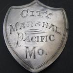 Pacific incorporated into St. Louis County in 1859. However, a larger portion of the city is located in Franklin County. They operate as a 4th class city and are located in the West County area and maintains their own police department. The City Marshals's badge pictured is currently the oldest in my collection. Badge was made by Haskell, approximately 1860 to 1880.